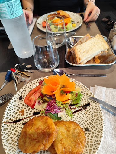 Experiencia decepcionante. Primero nos hicieron esperar 1h para una mesa dejando pasar antes a unos que habian llegado mas tarde. Cuando nos sentamos en la mesa lo primero que hizo la camarera fue tirarnos la bebida encima y recogió los cristales del suelo con la mano dejando bastantes sin recoger, después no nos cambio la bebida y tuvimos que beber los restos que nos habian derramado. En el momento de elegir la comida habia un menu que constaba de dos platos y un postre, el menú costaba 13,90€ y casi todos los platos añadian un suplemento de coste adicional al precio del menú y estaba escrito en una letra pequeña y minúscula. Pedimos un chuleton al punto y nos lo trajo duro y como una suela de zapato , a parte la guarnicion eran patatas congeladas del mercadona. Finalmente el postre que fue un escandalo, una crema catalana fina como una hoja de papel y los peores flanes caseros que hemos degustado en la vida, ademas nos hicieron esperar 12 min a que descongelaran el couland del mercadona que además tenia un suplemento de 2,50 €. También no nos trajeron cucharas para comer el postre y tuvimos que pedirlas. Nos trajeron el pan a la hora del postre ya que se lo tuvimos que pedir porque no nos lo traian. En la cuenta nos incrementaron el iva que no venía señalado en la carta. Aun estamos esperando la cerveza que nos dijo que nos traeria por habernos tirado...