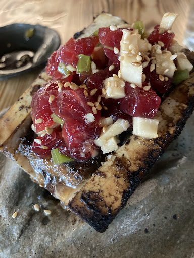 Interesting japanese styled restaurant (not run by Japanese). Small intriguing local. We tried the first tasting menu ( around 55 euro per head, wine apart. ) The plates in general were very good - a series of tasting experiences that will not disappoint. . The only course that didnt work was the niguiri plate - frankly it brought down the up to that moment what had been a very tastful menu. Besides that the rest was very pleasant. We went on a Thursday - so it was not crowded. Service was good, The music was low key and...