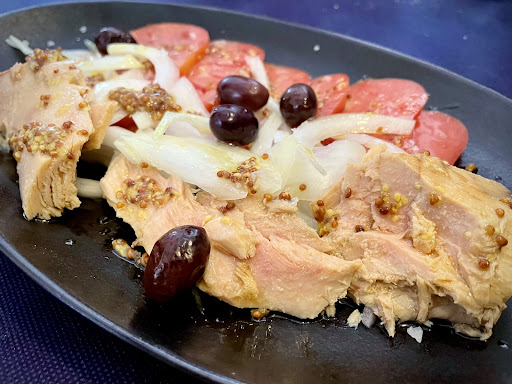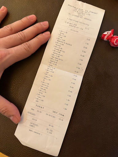 As starters we ordered ensalada and calamares, we get the salad, without oil or vinegar, waited more than 10 min and multiple requests. Calamares took 20min after the salad was served. As main course we got "galta de vedella" and "canelones", we wait for more than 30min and the "canelones" were superdry, the "galta" was ok.