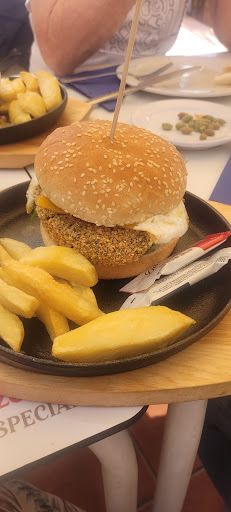 Another epicurean delight! (This is our fourth visit to Corral De la Pacheca in less than four weeks ... which should tell you something!) Constantly proving its "Tradition ... with Innovation" theme, we began our meal with Ensaladilla de Langostinos--something you won't find anywhere else in Olvera. Forget ensaladilla rusa! This is, by far, superior! We also very much enjoyed Gyozas de Langostinos (available as Gyozas de Pollo, as well), which is a superb balance of sweet and spicy ... Tostadita de Queso de Cabra C/Cebolla Caramelizada y Nueces ... and Pincho de Cordero con Cusceús. If we continue praising this restaurant, we will have to take its excellent staff -- who are as good as the food! -- back to Portugal with us. No question about it, in our minds: This is the very best...