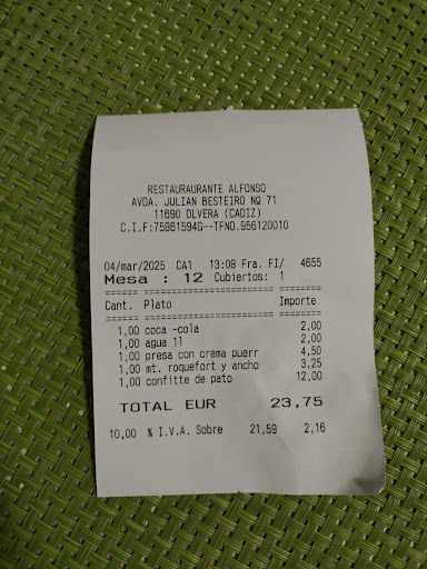 Es una excelente opción para comer en Olvera. El servicio es excepcional. La calidad de los productos es buenísima. Pedimos: -Tapa de atún, muy bueno -Tosta de queso de cabra, la vida con queso sabe mejor 😉 -Queso curado, si te gusta el queso, no te lo pienses, pídelo. Sabor muy fuerte, espectacular -Entrecot de ternera madurado, muy sabroso, te lo sirven al punto menos, si quieres te lo pasan más. -Costillas a la miel, hechas a baja temperatura, sabor, textura y olor increíbles, sin dudas lo recomiendo. Ver foto de como se quedan los huesos... Se deshacen.