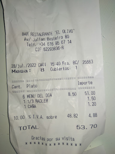 A local recommended this place to us on our pit stop. Not too sure after reading very contradictory reviews but decided to give it a try. Amazing flavors, portions and nicest service. We had Tapas, love love love the gambas/shrimp in aioli oil (garlic with a little spice), tender & fresh grilled squid, smoked salmon w/cheese, pork cheeks which was way too big a portion for a Tapas and with am full jug of rioja fresco.our bill €20.70. In the US where we are from, $100 easily. From the outside this place looked too big and empty but of course they eat very late and one of the best and cheapest meal we have had in our 2 months in Spain. Just eat here and ignore all the unhappy reviews, not a single bad reviews I read before eating...
