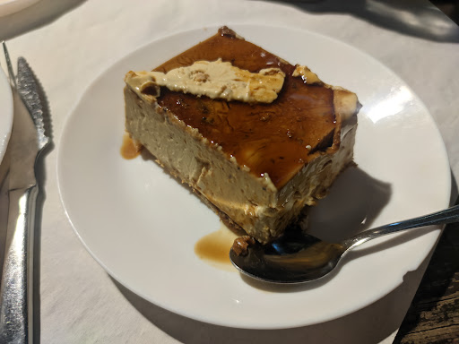 Read moreHace dos años estuve en varias ocasiones con unos amigos. En ambas ocasiones fuimos a cenar y la verdad es que ofrecen variedad pero ciertos platos, directamente no merecen la pena. Un amigo mío pidió un plato el cual, contenía un enorme pescado con patatas y ensalada que estaba bastante currado. Merecía la pena. Por otro lado, pedimos una serie de raciones como unas Alio li, que aquí te las ponían con una especie de salsa gris, otras raciones que no destacaban, y, sobre todo, se me ocurrió pedir un plato de salmón ahumado con crema Philadelphia. Tremendo error por mi parte. Resulta que me pusieron 8-10 rodajas finas con el tamaño de mi dedo meñique con un pequeño toque de queso en medio del plato. Costó si no recuerdo mal unos 10,50€ o algo más creo. Encima el salmón no estaba en su mejor momento...... Para compensar, algo mejoró todo, el postre. Pedí un flan de turrón con base de galleta que estaba...... impresionante. De los mejores postres que he probado en mi vida. Si algún día me pilla cerca me pasaré sólo para el postre. Espero que sigan teniéndolo para entonces. Estaba tan bueno que me pedí y comí dos (cada trozo valía 6€ oero merecía la pena). Es el de la foto que pondré a continuación, al resto de platos no mereció la pena hacer ninguna en mi opinión. En cuanto al tema del trato, es aceptable y justo. Digo justo porque en las dos ocasiones que estuvimos estaba todo a rebosar de gente. Tuvimos que esperar para tener una mesa libre en una de las ocasiones. Creo que por este motivo el trato fue así pero tampoco fue malo, en absoluto. El ambiente al estar tan lleno y con tantas voces (en nuestro caso parte de la terraza pero dentro por lo que pude observar era aún peor) costaba mantener una conversación en la mesa. Había mucho ruido de conversaciones, algún grito de algún niño........supongo que sería lo típico en estas situaciones pero no nos llegó a convencer en este aspecto. Este lugar es una opción viable para venir siempre y cuando tengas claro los pros y los contras. Para aparcar si no tienes parking como en nuestro caso, igual os resulta algo complicado y más si se pretende cerca del local. Ya solo por el postre que os he mencionado...