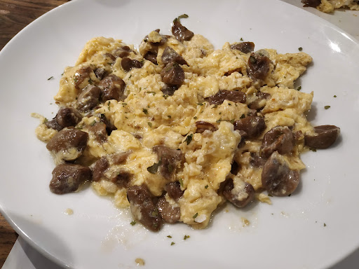 Read morefuimos cuatro personas , el camarero muy atento de la barra nos pone en un sitio amplio, viene una camarera de mesas correcta en el trato y educada pero no muy agradable a destacar que la música estaba muy alta y no era un tipo de música neutra para un bar pedimos una hamburguesa,un bocadillo y yo huevos rotos con de bacalao, ,( 4 patatas contadas, dos huevos a la plancha parte de la clara sin hacer y escaso bacalao y plato combinado que se pide en vez de huevo frito huevo revuelto y nos traen una tortilla...aún así se podía comer ...llega la hora del postre y me dan a elegir entre tarta de queso, flan , y goxua ...lo pido porque es un postre tradicional que me encanta ...y cuando viene me choca que en vez de estar el caramelo quemado hay una cantidad arriba de caramelo de frasco arriba exagerada me parece raro pero cuando me dispongo a comer detecto que está malo se veía sin probarlo ...lo digo la chica se lo lleva sin mediar palabras a cocina tarda un rato regresa pide disculpas algo avergonzada y me ofrece de postre solo como un alternativa un helado almendrado y ya lo anterior ni lo nombra ...le digo que no gracias porque no me gusta y se larga sin darme más alternativa y con una actitud de enfado... sin mediar palabra, pedimos la cuenta nos la trae rapidísimo ...y al marcharnos nos despedimos el camarero nos contesta pero ella ya no y nos ve y oye perfectamente, y nos vamos ...no creo...