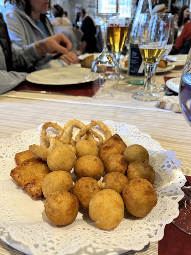 Read moreA la vuelta del monte nuestros amigos ya tenían reservado porque habían estado, y se acordaban de un excelente cogote de merluza. Comedor lleno, restaurante muy acogedor en un caserío a pie de carretera, con amplio aparcamiento 🅿️. En estos tiempos que corren, encontrarte un restaurante que sirve producto de calidad a un precio muy ajustado es muy raro, por ello una excelente reseña es lo mínimo que podemos hacer para que sigan llenos y podamos disfrutar de esta excelente cocina. Una sopa de pescado exquisita, de las que cuesta encontrar, un revuelto de hongos y unos chipirones jugosos, dieron paso al chuletón al punto con las 3 texturas y el bacalao que degustamos al medio. todo ello bien regado con un albariño y un Rioja, para acabar con unos postres a compartir, En definitiva, un lugar a tener en cuenta si vas a disfrutar del santuario de Arantzazu, Oñati, o una vuelta por el monte....