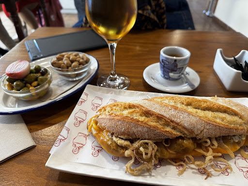 Read moreVinimos sin reserva y quedaba una mesa, asi que recomendamos reservar. Nos atendieron super rapido, pero fue una lastima que no supiesen recomendarnos ningun bocadillo ni tapa, desde un principio vimos que la atencion de nuestra camarera no iba a ser la mejor, pero vimos que el resto de careras eran mucho más amables, simapticas y atentas. Pedimos un bocadillo de sobrasada iberica, berenjena frita y queso de cati y otro bocadillo de panceta a baja temperatura, crema de pimientos del piquillo confitados y queso de ideazabal. Para picar nos pusieron dos cuenquitos de cacahuetes y olivas que en un principio nos parecian escasos pero al ser tan rapido el servicio no nos dio tiempo a acabarnoslos, de beber como no podia ser de otra manera vino de la casa con casera lo que hozo que subiera mucho la cuenta. Los bocadillos bastante buenos, las unicas pegas que les pondria seria que el pan no era de horno y que al de sobrasada le faltaba un poco de jugosidad, yo te recomendaria que lo pidas con miel. Para acabar cerramos con un cremaet que estaba bastante bueno.