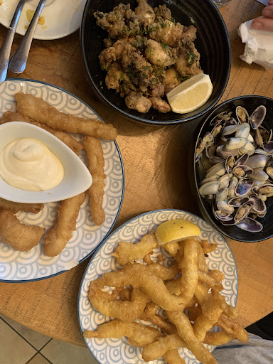 Read moreNos costó pillarle el truco al pueblo, el primer dia pedimos bocadillos de bacon queso que estaban espectaculares aunque algo caros. Nos dimos cuenta que dentro del local había una pizarra con tapas: zamburiñas, rabas, txopitos, etc. Así que al día siguiente volvimos y lo pedimos, esta todo espectacular! Repetimos todos los días que...