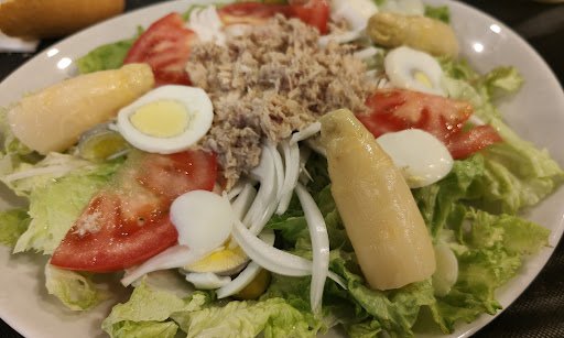 Más sombras que luces para este lugar situado en el casco histórico de Orduña. No hay menú, dispone de una carta donde puedes escoger entrantes, cazuelas, platos combinados y postres con precios moderados. La ensalada mixta es enorme, si vas con poco apetito no hace falta nada más. Los pimientos rellenos de bacalao y gambas en salsa no triunfaron, la bechamel no estaba buena, el bacalao escaseaba y las gambas casi no se presentan. Un detalle bastante feo fue que se pidió un plato de la carta que en la cocina se negaron a hacer porque no habían descongelado los mejillones, se dijo que no había prisa pero se volvió a dar otra excusa. Sí por el motivo que sea no puedes preparar un plato de la carta advierte a tu servicio de que no hay ese plato para que después no haya que poner excusas sin sentido. Un punto positivo para la camarera que tuvo que dar la cara y que además fue muy amable y correcta en...
