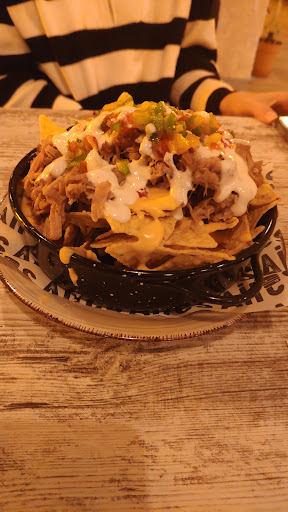 Los nachos eran normalillos con pulled pork y salsa cheddar. El plato estaba muy cargado, la carne estaba muy muy buena, el queso era decente, me recuerda a la salsa cheddar para dippear del Mercadona. Pros -Muy cargado, con consistencia -El pulled pork estaba muy bueno, me comería un bocadillo solo con la carne (seguro que alguien más lo habrá pensado, y si no... Ya sabéis de donde coger la idea ;) -Las salsas sumaban muchísimo al contenido Contras -Al estar muy cargado, necesita un recipiente que sea amplio para poder coger las cosas sin problemas. Sin embargo al estar en el recipiente tan pequeño se hace muy complicado e incómodo puesto que te vas a pringar y vas a necesitar ayuda de los cubiertos. -Los nachos eran de bolsa. -Los superiores se quedaban blandurrios al quedar empapado por las salsas, mientras que los de abajo se quedaban crujientes (no lo cuento cómo algo que influya puesto que es normal que los de arriba se queden así) -El pulled pork ha volado demasiado rápido jeje NOTA NACHOS PERRUNOS: 7'50