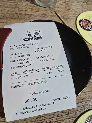 La comida está muy buena. calamares tiernos, los montaditos muy ricos. en fin todo estaba genial, hasta que me trajeron las patatas bravas que no son bravas de bravas llevan la salsa que está rica por cierto, pero lo que más me molesto fue cuando le pedimos un platito y digo platito(la pena que no eche foto) de patatas fritas para una niña de 5 años del cual en la cuenta se ve como me cobran 5 e. Lo mismo que costaban las bravas por media patatita frita que es lo que gasto el cocinero para hacérselas ala niña , le pregunto ala camarera y la respuesta fue de "risa y timo" ...es lo que me han dicho que te cobre. Osea que sabían el platito que le pusieron y decidieron cobrar 5 eurazos. Jajajaja de risa el precio y la respuesta de la camarera. Subo foto de las supuestas bravas y de la cuenta. Pena que no hice foto alas...