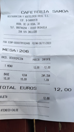 Read moreUn lugar, pero no tiene nada que ver con el Samoa de los años 80, por decir algo. Se esfumó todo el "encanto" de aquel tiempo, ahora todo "descafeinado". Pido una tostada con aceite y un zumo de naranja. Me trae la tostada pero sin el aceite. Espero y nadie viene. Entro a la barra y tengo que esperar un tiempo para que me mire y así poder decirles que la tostada me la habían servido pero sin el aceite de oliva. Mientras estoy en la barra del bar observo que la leche que estaban calentando en el vaporizador de la cafetera se desborda por la ebullición y que nadie se entera de que eso era para el momento. Total un cacao de desconcierto y que nadie se entera de nada o sea que ni siquiera te dicen: Oh!, por favor le ruego me disculpe! Parece que ahora todo funciona así. Váyanse todos a reciclaje...