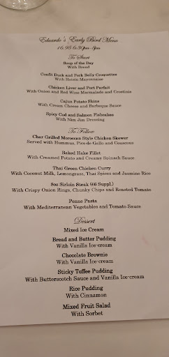 Read moreIt pains me to write this review about our if my favourite restaurant in Villa Martin Plaza, but I am very very disappointed with our meals on Friday evening 7th July. After a.giod 15 minute wait to be served, for starters I had mozzarella balls in breadcrumbs and my husband had mussels with a bottle if Pinot Grigio, so far so good, there was entertainment (singer and someone playing the piano) great 👍. For main course we ordered château briand we had to wait a while, but no problem there, when the food came me and my husband just stared at and had to ask the waiter is that it. What was delivered was a dinner plate with c.8 slices of steak and a small bowl of chips between the 2 of us - nothing else, not even plates or cutlery for us we had to ask for it, the waiter came back and.confirmed that was all we were getting and enjoy. Absolutely shockedthat eduardos can send out this paltry meal for 2 people, no salad no sauce nothing. Suffice to say the measly portion of food we did have was very tasty. The manager and he'd chef came over to speak to us if their own accord to ask if everything was OK, sadly it wasn't they took our feedback on board and went away to investigate, apparently we should have also had a peppercorn sauce with our meal but the kitchen failed to send it out- no explanation was offered !. Our bull came with the staggering price tag of 70 euros for our steak alone, the most expensive on the menue. Eduardos Italiano in partnership with Elliot Wright you have seriously got this wrong and I could cry, I left your restaurant feeling hungry and wripped off, value for money it was certainly not, good ambiance no, as there was a football team sitting next to us (Preston North end) and seems all attention was on them, good service sadly not. It would not be a restaurant I would recommend which pains...