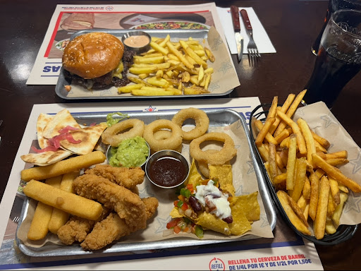 This is a busy restaurant. Went there for lunch. You're greeted at the door by the hostess who is not very chatty. She is functional with a vacant look sort of thing. We got our table quickly and our server was with us instantly for the drinks order. We both were having soft drinks (which you get endless free refills) diet coke and 7up. In the meantime we also put in the order for food. Me very well done ceasers burger and Ber ordered the chicken burger. After about 10 minutes a different person serves us our drinks. I taste the 7up it's just soda water no syrup. I get the attention of a waitress and informed her she nodded and seemed to sympathise, she continued on her way towards the cash register and then moved on out of our line of sight. I had no idea what was happening about my drink. After 10 minutes I called another waitress. While talking to her the other girl showed up and said it is already being dealt with. That another drink is on the way. I told her that she didn't tell me that. I think staff forget that they need to tell the customer what is happening. Any way the drink came at it was fine. A different person came from the kitchen to serve the food. He asked me to check that the burger was cooked sufficiently. I cut into the centre and it seemed to be cooked all the way through. Ber's chicken burger was good. As was my beef burger. I did find some slightly pink parts tho. Not sure if it's a Spanish thing to have rare medium or well done minced meat. There is a lot of staff on and it seems each person has one job to do. I can see how this can work well when everything is runnung OK. But I reckon if something goes wrong they simply don't know how to re-act. And their system breaks down. Having said that this visit was OK. 3 stars from me but want to give them a bonus half a star for the...