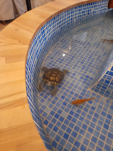 For the kids, there is an indoor koi pond with a terrapin turtle in, kept our daughter quite happy while we waited...