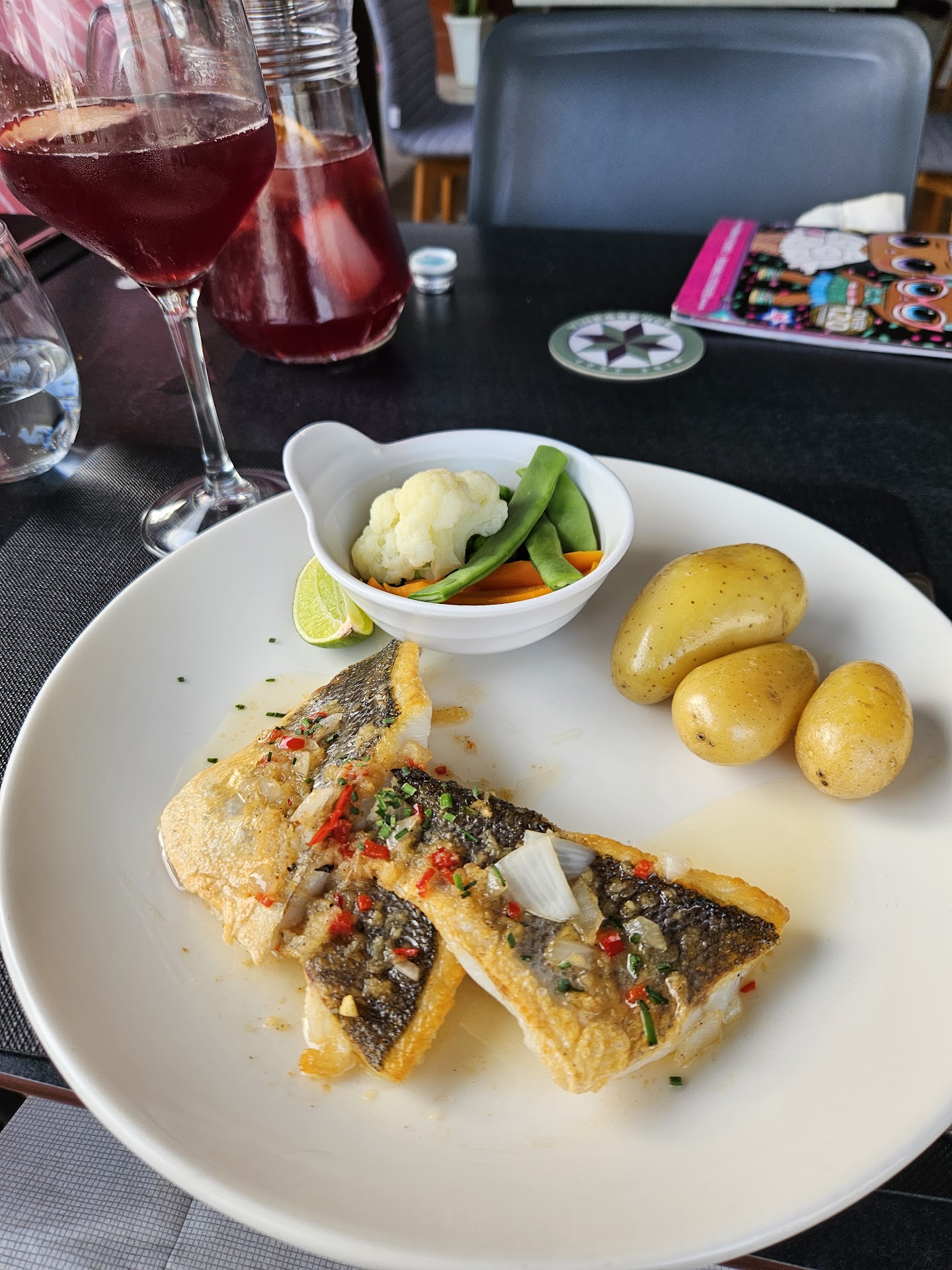 I ordered the fillet steak, very rare, and I recieved a perfectly cooked steak that needed no effort to cut it AND it came on a HOT plate. My friend also had the fillet cooked medium rare again perfectly cooked. Sorry but my pet hate is being served hot food on a cold plate. The ladies had fish, which again was beautifully cooked, and the presentation excellent.