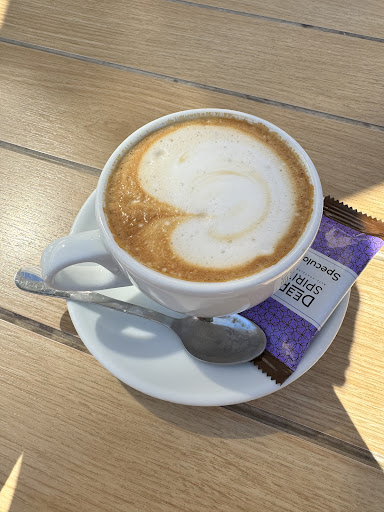 This wondeful place has a lot of things for locals and occasional tourists.Very good. 4 of 5 is a high rating and much for me, but they are worth it and I want them to know it. Prices are low compared to what you get and compared to similar places that close to the ocean, beaches. Sitting in the breeze when it is over 28 degrees is priceless. Food: You can try almost everything, everything keeps a high standard i.e. the gorgeous shrimp baguette (Santa Cruz), most of the sallads - especially the greek sallad with proper tasting of the feta cheese, and very tasty vinegar. I have tried so many dishes but have to check out the main menu better but I'm too much of a chicken. Breakfast is what it is - traditional English and not much of a connoisseur's first choice. Baguettes and sandwiches are all good and price worthy. Bacon and Brie panini not to forget. Mussels Blanco - you get as many as you deserve - a big plate if you choose Fish, and not starter. The starter Mussels is wonderful, as a starter though. I will try the Carbonara next time, Suki will like that, and I'm eager to taste and understand what kind of cheese they use. As a matter of fact, I have't had any better Carbonare yet, than the one I make myself. Personell: Wonderful staff/personell. Alert, friendly, eager to comply the different needs. Even when there are a lot of people - between 11 and 4, they take their time to chat. Dogs: Suki and I go here a lot - usually after the dog beach around the corner (2-3 times a week). She can get a sausage or two and gets water without her asking. We are loners, me and Suki, so we occupy a single table, but even when there are no empty seats, the staff talk to other tables and fit us all in! Cons: They serve these freaking terrible Cola or Fanta in 200 ml bottles but keep the 350 ml prize. That sucks 'cause I need at least 2 of those. Garlic bread at € 4. They should serve it free...