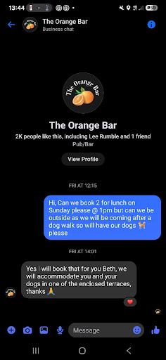 We had booked for Sunday lunch through Facebook and my partner mentioned about our dogs they were very accepting in the message, upon arriving today I went in to say we were here they had no acknowledgement of our booking and as soon as I said we had the 2 dogs they became shitty with me the fact I had brought my dogs and were acting like it was a problem, they asked if they were calm dogs which they are and 1 waitress pointed at our dog and said well she's not very calm is she.. which he is a male dog and was excited to be some where new! We came all the way from Crevillente to try this new place and just felt so unwelcome the fact that they wanted to put us some where away from people. We found it disgusting and chose to leave as we didn't feel...