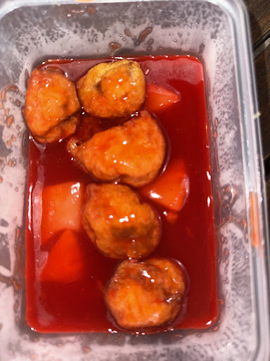 The stir-fried pork was a mystery dish from another planet: dark, dry, and oddly chewy, with random clumps of something pretending to be meat, coated in batter, and served with a sweet & sour sauce that looked like it came straight from a science experiment. Whatever it was, it didnāt look like it belonged in the human digestive system.