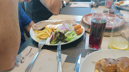 Absolutamente equivocada....me lo recomiendan como cocina casera pero mi casa debe ser de otro planeta. El comedor es grande y me sientan en el medio, teniendo en cuenta que soy la única chica sola, y esta a reventar de señores de mono azul. No hay verdura en la carta menú de 11 euros, las lentejas, compactas de taladro, con unos trozos indecentes de tocino, fallo mío por no preguntar, era cerdo con lentejas y frias. La chica se las lleva tal cual vinieron pero no me pregunta nada.El pescado de la carta, bacalao frio en salsa verde, pura harina y una gindilla bien hermosa, para todos los públicos..... El arroz con leche de postre no sabe a leche, en su lugar un sabor medio ácido de risketos me recuerda que no debo comer más de una cucharada. Dos tragos a la.copa.de vino blanco y mis conductos digestivos limpios e impolutos como si de aguarrás se tratara...y el agua del grifo. Efectivamente muy acogedor el pintxito de la puerta, el caballero que me recibe es muy amable, pero a partir de ahí..... Que lastima de tarde...