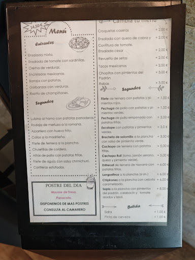 Read moreMuy muy mal servicio, maleducados y muy muy muyyyyy lentos. Platos sencillos y muchos precocinados o casi! He estado varias veces, la última pedi raviolis eran de bote bote con tomate de bote. Y de segundo pedí lenguado, cuando empecé a comerlo me pareció un poco crudo pero cuando llegué a la cabeza me encontré con todas las vísceras! Muy desagradable y mal sabor le dije a la camarera y de manera bastante desagradable me dijo que eso lo traían ya así de fuera y que ellos solo lo calentaban, que se les habría pasado al que los traia... Que un lenguado lo traiga una...