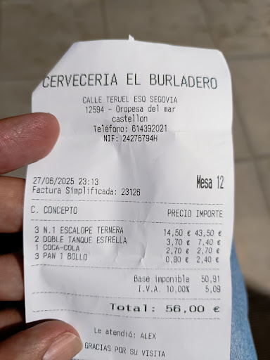 Read moreFuimos a cenar preguntamos al camarero si tenían cañas en recipientes mayores a los normales nos comenta que si que hay jarras de 1/2 litro , le decimos que o.k que sirva las jarras de 1/2 litro nos sirven y nos traen vasos de los de sidra una camarera,a esa misma camarera se le pregunta que a ver si esos vasos son de 1/2 litros nos dice que si , entonces se le comenta que de donde venimos que esos vasos son de 33cl.no de 1/2 entonces es cuando nos dice que bueno que lo que hemos pedido es uno doble que en cada región es diferente.... Seguimos con la cena , pedimos un botellín de agua que ni siquiera nos lo traen , ya una terminado perdimos la cuenta y vemos que botellín no está cobrado pero que las cañas de 33 cl cnos la cobran 3.7€ cuando un botellín de un tercio te suelen cobrar a 3€ ....se lo comentamos al camarero y nos pone la disculpa que se le habían acabado las jarras... Así se quedó la cosa no volveremos más por allí.,no nos gusta que nos...