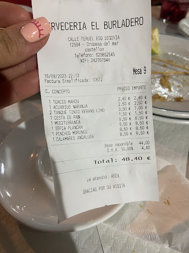 Para empezar, las raciones eran bastante pequeñas para el precio que tenían (8,50€ y 9,50€), otro punto fue que pedimos además pan y nos lo trajeron ya cuando habíamos terminado, y porque se lo habíamos estado pidiendo al camarero en varias ocasiones, encima era un pan muy malo y seco que no debía ser ni del mismo día.