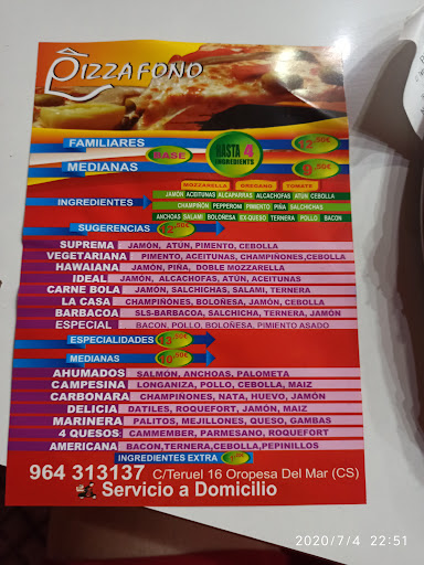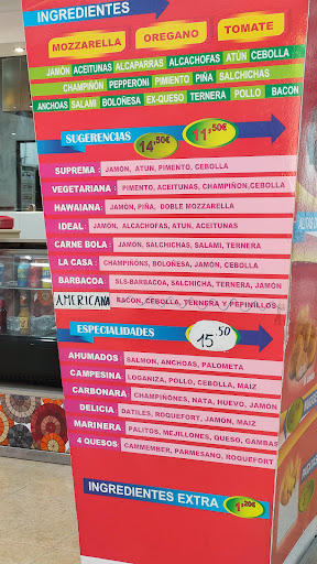 En segundo lugar me ha gustado el menú pues te puedes medio personalizar la pizza, añadiendo a los ingredientes base ( tomate, queso y orégano ) 4 ingredientes adicionales a elegir.