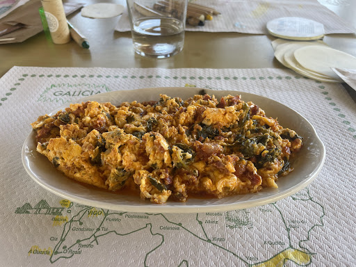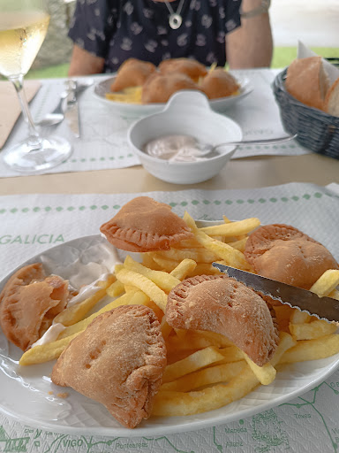 Read moreViernes de puente de agosto. Llamamos 15 minutos antes de ir, nos dijeron que había sitio y nos reservaron mesa. A las 15:00 nos sentaron en la terraza (no estaba lleno aunque había movimiento) que está junto a un parque privado donde puedes dejar a los niños jugando. A las 15:30 tras pedir la carta un par de veces logramos pedir el menú del día, que se componía de 4 primeros y 4 segundos a elegir, postre O café por 14€ (ojo, entre 2 y 3€ por encima de la media de la zona). A las 16:00 nos sirvieron el primer plato, 1 hora después de sentarnos. Los champiñones al ajillo eran de bote, el revuelto de grelos con chorizo estaba bien hecho pero totalmente pasado de sal. Los segundos llegaron a las 16:30. Tomamos churrasco con criollo y dorada a la plancha, ambos bien. Conseguimos a duras penas pedir los postres casi a las 17:00 (el flan de queso estaba rico). Una pena que el servicio haya sido tan sumamente lento porque el entorno del restaurante es muy agradable. Hubiese agradecido que al llamar por teléfono me hubiesen advertido de que estaban saturados. No entiendo como un restaurante acepta más mesas cuando sabe que está por encima de su capacidad de servicio, no es bueno ni para el restaurante ni para el cliente. No...