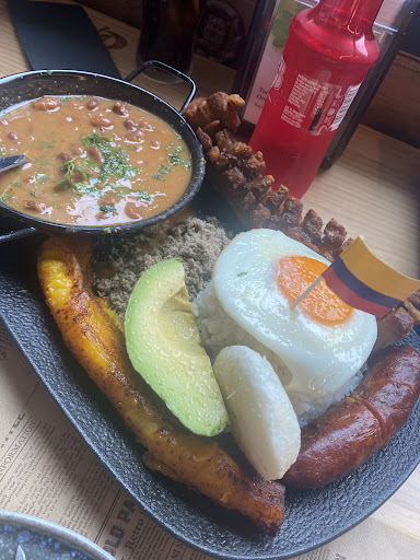 La verdad lo único que puedo destacar es el precio de los platos fuimos 5 personas y muy barato la verdad, pero la comida... sin mucho que decir, la picada básicamente es costilla, chorizo y algún trozo de chicharrón, sobre una cantidad extrema de patatas fritas, las arepas no estaba bien fritas y la carne extremadamente frita, al punto de ser tiesa, la bandeja paisa, sin mas, los frijoles al sabor no muy agradables se pidió un calentado paisa el cual pedimos para llevar porq a nadie le gusto, lo regalamos a una de las personas q suelen quedarse fuera del corte ingles, para que no lo tiraran, y pues habíamos llegado por publicidad de insta y no vale la pena el viaje. La atención fue rápida, pero terminamos y la mesa duro 30 min sin recoger hasta que yo me levante a pedir algo para empacar...