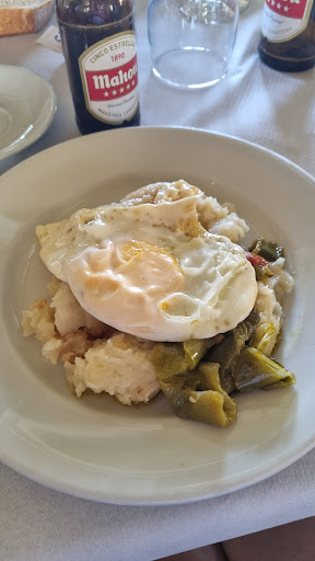 Read morePara abrir boca nos pusieron unas aceitunas que estaba más dura la carne que el hueso. Pedimos el menú del día, era sábado y costaba 17.90. Mira si el servicio fue rápido que en menos de 1 minuto nos trajeron los primeros : patatas al monton: esto era puré con un huevo "frito" ( la yema en vez de mojarla la partimos en trozos) y el pimiento ( concretar que era un trozo) estaba cocido. Daba la sensación de que lo habían metido todo al micro y a servir. paella de marisco: llevaba trozos de calamar y mejillones. La del Mercadona mucho mejor.