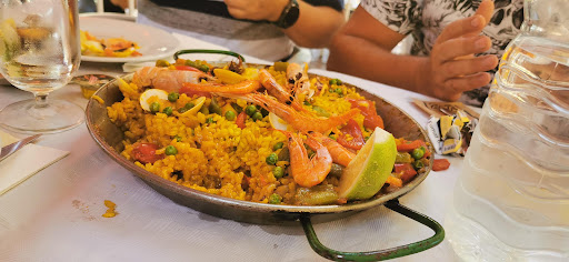 Pedimos una paella de marisco para 4 con reserva y digo con reserva porque tardaron la vida en traerla. A parte de eso, la paella de marisco era lo que muestro en la foto. Un caldero de 2 personas con un kilo de arroz empastrado de tres dedos de grosor (normal con un caldero para 2 personas) llevaba 4 mejillones, 4 cigalas (que menos ya que es de marisco), gambas cocidas pequeñas, y el preparado de paella de verduras que venden congelado jajajaja muy fuerte. Ese dia tenían de menú paella mixta y la paella es igual a la que nos sacaron a nosotros en caldero salvo que le pusieron carne, por lo demas igual. No tenéis ni idea de hacer paella de marisco porque marisco poco por no decir nada, eso sí, de arroz vais sobrados con el montón que hechais. Llevábamos una perra y ni la perra se comió el arroz (con eso lo digo todo). Si esa es vuestra especialidad, según la chica que me atendió por teléfono, deja mucho que desear. Ese arroz se lo vendeis a los extranjeros y tampoco lo quieren. Os invito a valencia a comer paella de lo que querais jajajaja (no arroz empastrado con cosas).