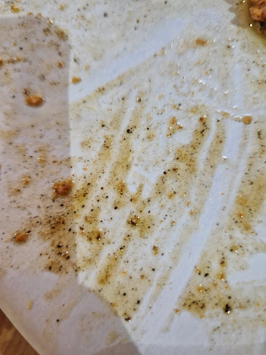 En cuanto a la comida: El pulpo estaba bueno, aunque demasiado al dente para nuestro gusto. Media ración muy bien de tamaño. Las zamburiñas a la plancha eran grandes y sabrosas. Nos gustaron mucho. Zorza: cocinada con el aceite sin cambiar o la plancha sin limpiar desde hacía tiempo (adjunto fotos). Creo que no se debe servir un plato así a ningún cliente en ningún restaurante. La comida debe estar cocinada y LIMPIA, nada de restos requemados en el aceite ni en la comida, que además son nocivos para la salud.