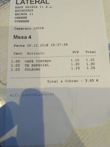 Read moreLe bar est très bien décoré, le service est super et très rapide. Le serveur est génial et très souriant ! Un endroit superbe avec un service 5 étoiles. C'est l'endroit parfait pour boire un verre et se sentir comme à la maison. Très bonne ambiance et surtout un service très rapide. Ils ont une belle terrasse et la musique est superbe ! L'endroit parfait pour passé une soirée agréable en bonne compagnie ! Si vous êtes à Orense le détour en...
