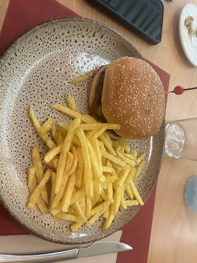 Viene otra camarera a la mesa y me dice que no hay hamburguesa. En ese momento le gritan desde la cocina que si hay. Yo bromeo con mi amiga que ahora me van a traer la hamburguesa rancia de hace dos semanas. Pues...