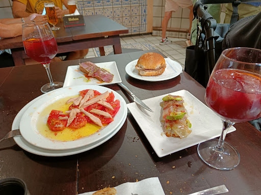 Read moreUn bar de tapas de toda la vida, sin florituras, simplemente tapas básicas y ricas. Muchas de ellas son ahumados ( sardinas [ le llaman anchoa, pero estoy seguro que es sardina ahumada ], bacalao, atún, lubina ... ). Hicimos un pincho de atún ( bastante rico ) y uno de sardinas ( no estaba mal ). Luego un tomate con ventresca, el tomate muy bueno, con su aceite de oliva. Para finalizar hemos hecho un pincho de solomillo con pimientos del piquillo, bien rico también, el solomillo no muy hecho, lo cual es de agradecer.
