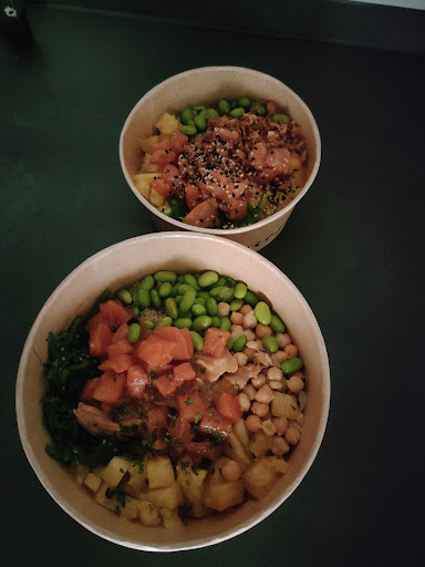 Lo que realmente me hizo sentir un descontento monumental fue al abrir el poke. El arroz venía completamente apelmazado, nada que ver con otras ocasiones. La proteína que había elegido era pulpo y langostinos, viniendo 3 rodajas de pulpo (por las que he pagado 1€ de suplemento) y 4 langostinos, nada que ver con anteriores ocasiones.