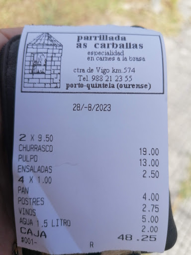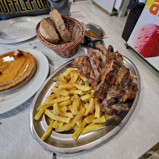 Read moreSi estáis en Ourense, hay que visitarlo.En él podréis degustar gastronomía típica de la zona, y encima, con éxito!! Pedimos una ración de pulpo (riquísimo) junto con dos raciones de churrasco mixto con patatas chorizo criollo y una ensalada.Avisar de varias cosas, la primera es que suele haber mucha afluencia de gente, ya se sabe, lo bueno corre como la pólvora.Aun así tienen un método curioso pero eficaz, esto es, no se puede reservar, acudes al mostrador te dan un número y esperas en la entrada... Nosotros éramos 4 y esperamos una media hora, la verdad que para toda la gente que había no esperamos mucho...Pero si podéis acudir fuera de horas punta, es más que recomendable.Y lo segundo, en la carta aparece churrasco, mixto(cerdo) y de ternera pues bien, el precio es por ración.Lo cierto es que las raciones son generosas ya que vienen acompañadas de costilla,churrasco, chorizo criollo y patatas, nosotros pedimos dos y nos quedamos muy bien.La ensalada es pequeña pero el precio también, dos euros y pico.En cuanto al vino, disponen de uno blanco y otro tinto a 5€ botella...El tinto estaba fresquito y no estaba del todo mal.El pan espectacular..Pan Gallego, riquísimo.Y en cuanto a los postres, los hay caseros y otros más comerciales, en nuestro caso, y muy a mi pesar querían tarta de queso con mermelada y desgraciadamente no había casera...Aún así,estaba muy lograda. Lo que hicimos nosotros fue coger el trenecito en Plaza Mayor e ir a las termas más lejanas, Outariz.De allí fuimos andando a las de Muiño y desde allí, accediendo a través del parking llegamos al restaurante.Total unos 20 minutos, que vaya si merecieron la pena.Como he comentado al principio, si estáis en Ourense, hay que visitarlo,si o sí. No sólo por el sabor y preparación de sus platos sino también por el personal,, que a pesar de estar trabajando a destajo fueron amables,eficaces y muy simpáticos.Ahi os lo dejo, que disfrutéis...