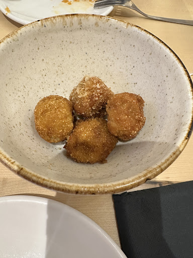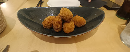Read moreTípica comida entre compañeros de trabajo, menú cerrado, 30€ más la bebida aparte. El local está situado en el centro de Ourense, a la entrada de la zona Vieja, en el parque de las Mercedes. Tiene dos plantas, la planta sótano es el comedor y allí también está la cocina, que puedes ver como trabajan mientras comes. La comida en sí no estuvo mal, pero......ese es el problema: platos muy justos de comida (somos gallegos y nos gustan los platos abundantes), alguno sin un sabor definido como el carpaccio de pulpo con queso sobre base de patata, creo que era así el plato, sabía a patata y el pulpo tan fino, que se veía a través de él. Había una "pinzas" o como lo quieran llamar, una masa de pan estirada (nos decían que era de la misma masa con la que hacen el pan de Cea), con queso feta, tomates y alguna cosa más que no recuerdo bien: el plato con sabor, pero el pan de la base excesivamente duro (aunque a mí me gusta así, pero tengo que reconocer que estaba demasiado "crujiente"). También hubo arroz, rico, sin más. No me voy estirar más, aunque en la mesa de al lado estaba viendo unas hamburguesas "de verdad" que tenían una pinta estupenda, me va a costar volver a este sitio. El trato del personal exquisito, pero muy lentos con nosotros. Una pena, porque el local...