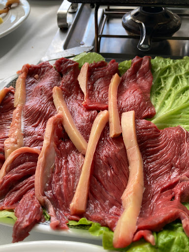 Read moreT-bone Gallego (aged meat from Galicia) - minimum 2kg (€56/kg), T-bone import a bit less 1,6-1,8 kg (€35/kg); T-bones come with salad and fried potatoes 🥔 (potato’s from the region, fresh, not frozen - taste very good). Grand selection of mineral water 💧 from all over the world. Wine list was also good with fair prices but wine by glasses was only one option (homemade). Ana - the owner- very attentive...