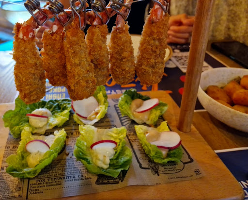 Desilusionada totalmente. Voy a empezar por algo que iba a dejar pasar si no fuese porque la comida fue una gran decepción. Llegamos al local y nos llevan a un comedor que tienen fuera del restaurante el cual no estaba aún preparado. Entramos a oscuras, sin música...creo q lo más lógico es decir, "esperen aquí un momento q vamos a preparar su mesa", porque queda muy feo. Demuestra poco nivel, la verdad. La música no nos la pusieron hasta media hora después, no estuvimos muy cómodos con ese silencio sepulcral. Nos sentaron en una mesa casi metida en la barra xq en la q nos íbamos a sentar parpadeaba la bombilla y la tuvieron q quitar (cosas q pasan, claro está, no hay problema), pero es que resulta que uno de los focos led de la barra tambien parpadeaba (el cual no se puede quitar tan fácilmente)y como estábamos casi metidos dentro de ella, nos molestó toda la comida. Pedimos dos entrantes: una ración de croquetas de chipiron, realmente buenísimas, (de ahí que le ponga una estrella más) y unas patatas bravas. La salsa cuando la probamos pensábamos q estaba avinagrada, mala, pedimos q nos la retirasen, al rato vinieron a traer otras salsas y a explicarnos q la brava era así, q la salsa que hacían ellos se hacía en el día, pero que llevaba vinagre. Vale, entiendo q esa sea vuestra manera de hacerla, me parece muy bien, pero entonces pon en la carta...yo q se: "patatas con salsa tizar" o incluso "patatas con salsa brava a nuestra manera". Porque a mí no me gusta el vinagre y cuando pido unas patatas bravas no pienso ni por asomo que van a tener vinagre, dado que ninguna receta lo lleva. Eso ni se acercaba a una salsa brava. Si pido mayonesa espero q me traigan mayonesa, no otra salsa. Y si fuese una variante de esa mayonesa: con vinagre, con citricos o con albahaca, por ejemplo, también lo tienes q especificar, incluso por temas de intolerancias. Al final me cobraron unas patatas bravas q nunca lo fueron xq las comí con otras salsas, lo cual, si lo sé, hubiese pedido otro plato, pero no me dieron esa alternativa. Tampoco me preguntaron si las otras dos salsas eran de mi gusto, porque no es lo que pedimos. Lo normal sería: "tengo estás dos alternativas, pruebenlas a ver si les gustan y si no les cambio de plato sin problema". Es decir, muy mal servicio , porque tampoco durante la comida, ni al final, ni en ningún momento te preguntan "que tal todo?" Luego pedimos los segundos: un jarrete y una pinsa del chef. El jarrete estaba tierno y la salsa estaba buena, pero sin mas. La guarnición creo q no es la adecuada para un jarrete de 18 euros, unas patatas fritas cortadas tan gruesas y saladas como snack, que son adecuadas para una hamburguesa o unas patatas con salsa, pero no para un jarrete. Y la pinsa bueno, la descripción era "una masa crujiente", q en absoluto lo era, de hecho estaba totalmente blandengue la cual tenías q comer con cuchillo y tenedor porque se deshacia y el "crujiente bacon" parecía bacon cocido (si puedo, adjunto foto), muy mal ejecutado y el sabor muy aburrido. No entiendo la nota de este local, es la primera vez q voy a un local con tan buena valoración y me decepciona tantísimo. Tanto por la comida como el servicio en general. Alomejor no elegimos los platos adecuados y sus especialidades son otras pero, entiendo q toda la carta debería estar al mismo nivel de sabor y ejecución si no,...