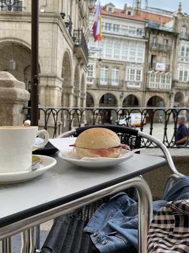 Fantástico por su ubicación en la plaza mayor de Ourense, terrazas con vistas a la plaza, bajo los soportales. Muy buen café, siempre acompañado por un dulce cervezas, vinos. Muy buena atención, limpieza entre clientes, mascarilla hasta el momento de consumir. gradable para reuniones con amigos o compañeros de trabajo. Excelente, se va el día sin...