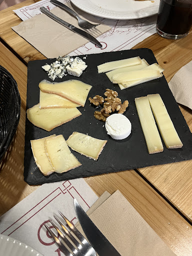 Read moreHe pasado muchas veces por delante del establecimiento pero nunca me llamó la atención desde fuera. Así que fue una sorpresa cuando fui y vi lo bonito que era por dentro. Reservamos una tarttuflete, que venía siendo una cazuela de barro con patatas, cebolla y bacon, todo gratinado con un buen troncho de queso. Además de acompañamiento venían fiambres y ensalada. Todo riquísimo. El dueño un sol, nos fue explicando muchas cosas sobre la comida y el queso en general, haciendo la velada más interesante. Por último los postres, todo casero (incluso el helado) muy rico y con un...