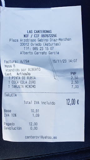 Lo mejor; -Unos camareros muy majos (de lo más simpático que he conocido en Asturias), rápidos y profesionales. -Buena cocina. -Precios normales. -Buena variedad de raciones (las patatas canteronas son originales y muy ricas) -Menús con variedad de platos y que los fines de semana mejora el género (sube el precio, claro). -Hay pinchos. -Variedad de bebidas alcohólicas: vermú, vinos, etc. -Buena terraza (más de 20 mesas me ha parecido), con toldos y sombrillas, y con un sol muy agradable por la tarde. -Interior muy cuidado y confortable. -Buena situación.