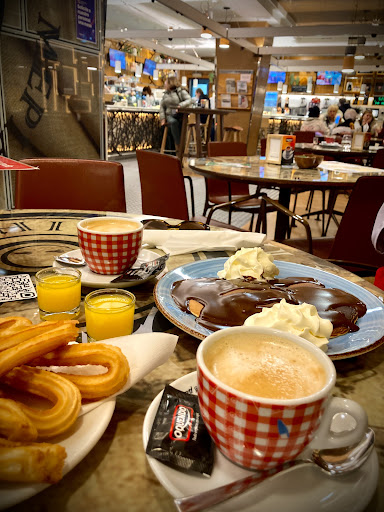 Read moreDeja mucho que desear !!!! 20 minutos de espera por un pincho y una porción de churros y dos cafés !!!! En principio.. al llegar la mesa estaba sin levantar , el camarero muy poco observador paso al lado nuestro y no la limpio , tuvimos que llamarlo para que nos tomara pedido y aclararle que eso no era nuestro y pedimos lo ya mencionado , luego entraron más personas sentándose en mesas de nuestro alrededor , que realizaron su pedido, nosotros a la espera de lo nuestro , vemos que viene con la bandeja y cafés que para nuestra sorpresa no eran los nuestros, eran de las personas que llegaron después que nosotros , seguimos esperando , lo llamamos pasa de nosotros , vuelve con una bandeja que era para otra mesa por lo que vemos era la nuestra , la mesa le reclama , seguimos a la espera , al verlo pasar lo llamamos se acerca y le reclamamos nuestro pedido nos dice que lleva tiempo hacer los cafés los churros y el pincho ya habían pasado 20 m , y dice bueno eso tarda , y se va retirando dejándome con la palabra en la boca , entonces le decimos que anule el pedido que nos vamos. Que decir .... Desepcionante, una pena de...