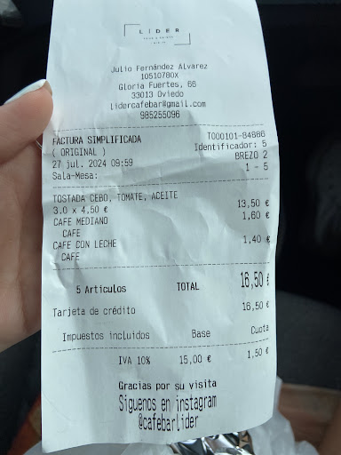 Read moreFui a pedir un desayuno para llevar, en concreto 2 cafés y dos tostadas, una entera y otra media ambas con aceite y tomate. Después de estar esperando casi 20 minutos para que me lo sirvan, me dicen que el desayuno cuesta 16.50. Me parece un abuso que me hayan cobrado 4,50 por cada media tostada, es decir que por la tostada entera de aceite y tomate me han cobrado 9 euros. Me parece un precio totalmente desorbitado y excesivo. ¿Qué me hubiesen cobrado si hubiese pedido jamón? ¿30 euros? Es decepcionante querer ir a desayunar a un bar y darse cuenta del poco descaro que tienen en cobrar esos precios a las personas, y que no les importe. Sin duda, después de esto, y como es de esperar, no volvería a...