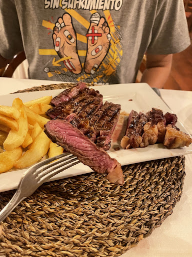 Read moreOur waiter Javier made sure that we were well taken care of, despite not being able to speak much English. He gave us a serving of Smoked Jamon while we waited for our mains. We didn’t order any starters under the advice of Javier. We enjoyed both of our mains: the portions were huge! : I had the Ingot of Suckling Pig, while my date had the beef steak. Both were delicious: the suckling pig was braised and was accompanied by a fragrant truffle sauce glazed with kumquat (sadly I forgot to take a photo). The steak was juicy and charred nicely. Best steak on this trip so far in Spain! (We have been in Spain for about 2 weeks) We had the Estada Reserva red wine which was extremely good value for money (25 Euros) and...