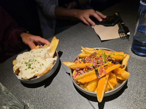 Read moreEl trato muy bueno. Pero tuvimos un par de detalles que no nos hicieron la experiencia de 5 estrellas. Pedimos las croquetas de mac and cheese, y por error vinieron congeladas en el interior, probablemente porque el aceite estuviera muy caliente porque lo que era el rebozado estaba perfecto. Avisamos a la camarera y nos ofrecieron sacar otra tanda, que muy bien, pero como teníamos el resto ya pedido no queríamos llenarlos y preferimos continuar con lo pedido. Esperábamos que aún asi no se nos cobrara por el plato, pero no fue así, incluso a pesar de haber tenido que dejar parte de las croquetas sin comer. Las hamburguesas estaban muy buenas, pero mis amigas las habían pedido poco hechas y vinieron todas al mismo punto de cocción, hechas. Las patatas muy ricas tambien y pedimos una tarta de queso para compartir que también estaba muy decente. Sinceramente me parece que la carta está un poco inflada de precio, pero la comida no está mal. Aún así los pequeños detalles probablemente me hagan escoger otro restaurante de hamburguesas antes que...