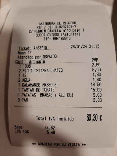 Read moreVery decent place. We went for menu del día and ordered callos on top. Great respectable callos, good food. Fantastic service!!! 10/10! One of the so few places that ask if you want bread or not or any other thing. Love...