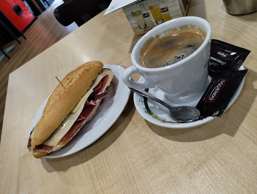 Read moreTienen unos pinchos muy ricos . Si quieres uno determinado , te lo hacen en el momento. Un café Oquendo buenísimo ! Se valora mucho el tener muy buen café . Personal amable, agradable . Local grande , con lo cual las mesas están bien separadas . Medidas de distancia covid aplicadas con rigor . Pantallas planas para ver eventos . Mesas en el exterior alineadas en la acera . Suele ser la única cafetería abierta en la calle San Pedro Mestallón en días festivos y eso es mucho de agradecer. Un sitio que merece la pena , sobre todo siendo del barrio de...