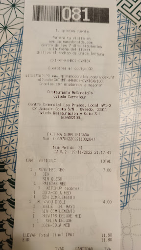Read moreQuiero decirles a los dirigentes que llevan años teniendo errores garrafales en sus pedidos, jamás me llegan completos, siempre falta algo, hoy por ejemplo uno de los comensales, que sólo quería un mcflurry, se quedó sin su cena. Repito esto es muy cotidiano, cuando no falta una hamburguesa, falta un refresco o unas patatas o alguna salsa, esto no sólo me pasa a mí, se de mucha gente que le pasa lo mismo. Miren ustedes por muy arriba que se esté, bajar se baja en un tris y claro está los negocios no se mantienen solos, se necesita mucha dedicación, esta es mi modesta opinión. Les ruego observen estos asuntos y tomen medidas, nos obligan a hacer esperar al repartidor para comprobar que ustedes lo han hecho correctamente, ¿no creen ustedes que es deleznable?, claro sale en el ticket y si no lo meten ¡¡¡¡ah se siente!!!, no hay nada que reclamar. ¿No es muy triste tener que hacer esperar a una persona que está haciendo su trabajo, por la desconfianza que ustedes generan? Ustedes cobran por adelantado, nosotros tomamos lo a su libre albedrío nos...